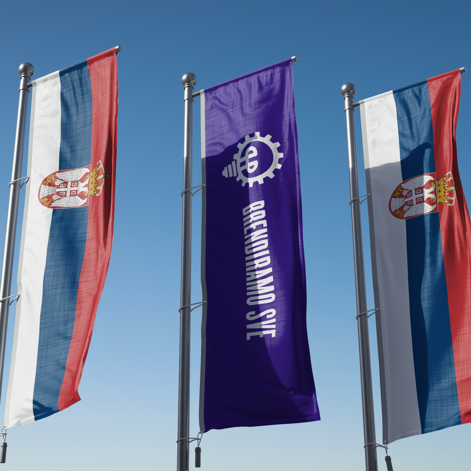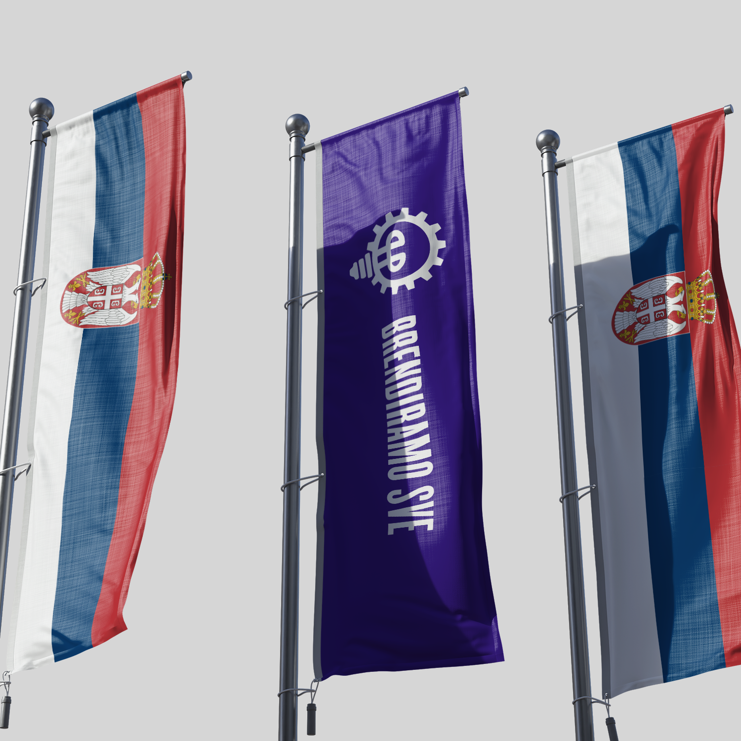 Vertikalno orijentisana zastava sa „L“ nosačem predstavlja najefikasniji i najpraktičniji način isticanja zastave na otvorenom prostoru. Zahvaljujući tome što se zastava postavlja po dužoj strani i stalno je u otvorenoj formi, vaša poruka ili brend su uvek jasno vidljivi – čak i kada nema vetra.