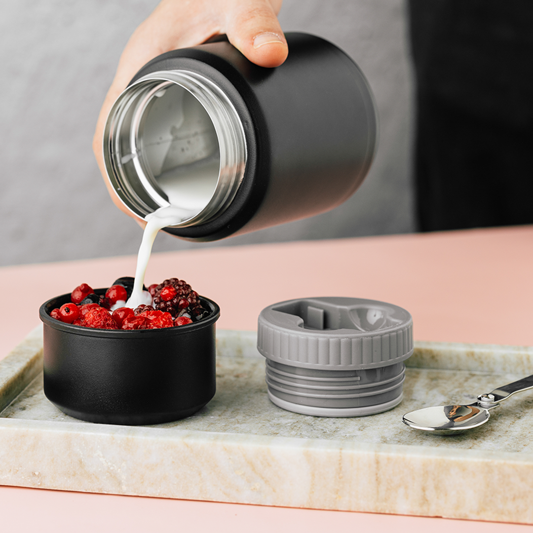 Lunch box sa priborom (500 ml) je praktično i elegantno rešenje za obroke van doma — idealan za posao, školu, piknik ili putovanja. Napravljen je od nerđajućeg čelika, sa poklopcem i  priborom, što ga čini čvrstim, dugotrajnim i spremnim za svakodnevnu upotrebu.