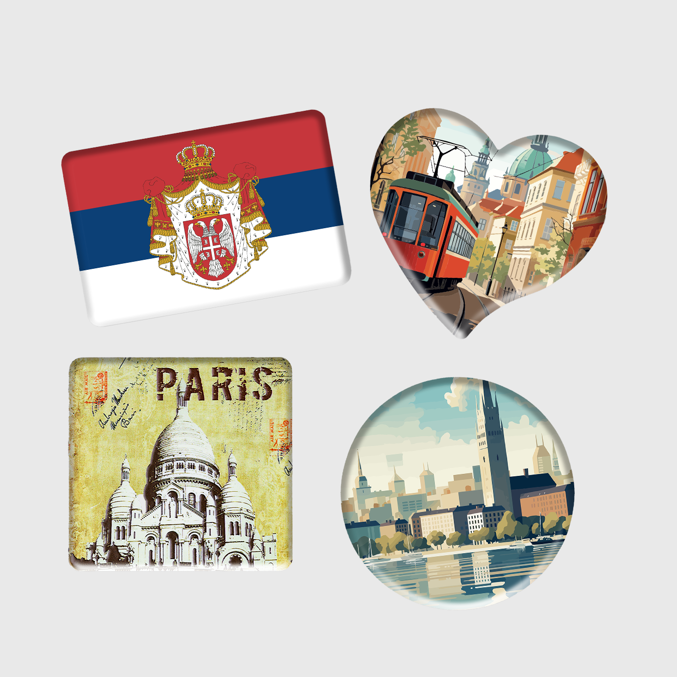 Naši promotivni magneti dostupni su u četiri atraktivna oblika – srce, pravougaonik, krug i kvadrat – savršeni za brendiranje i dugotrajnu promociju. Izrađeni su od kvalitetne plastike sa glatkom površinom pogodnom za full color štampu, što omogućava jasan i postojan prikaz logotipa, fotografija ili promotivnih poruka.