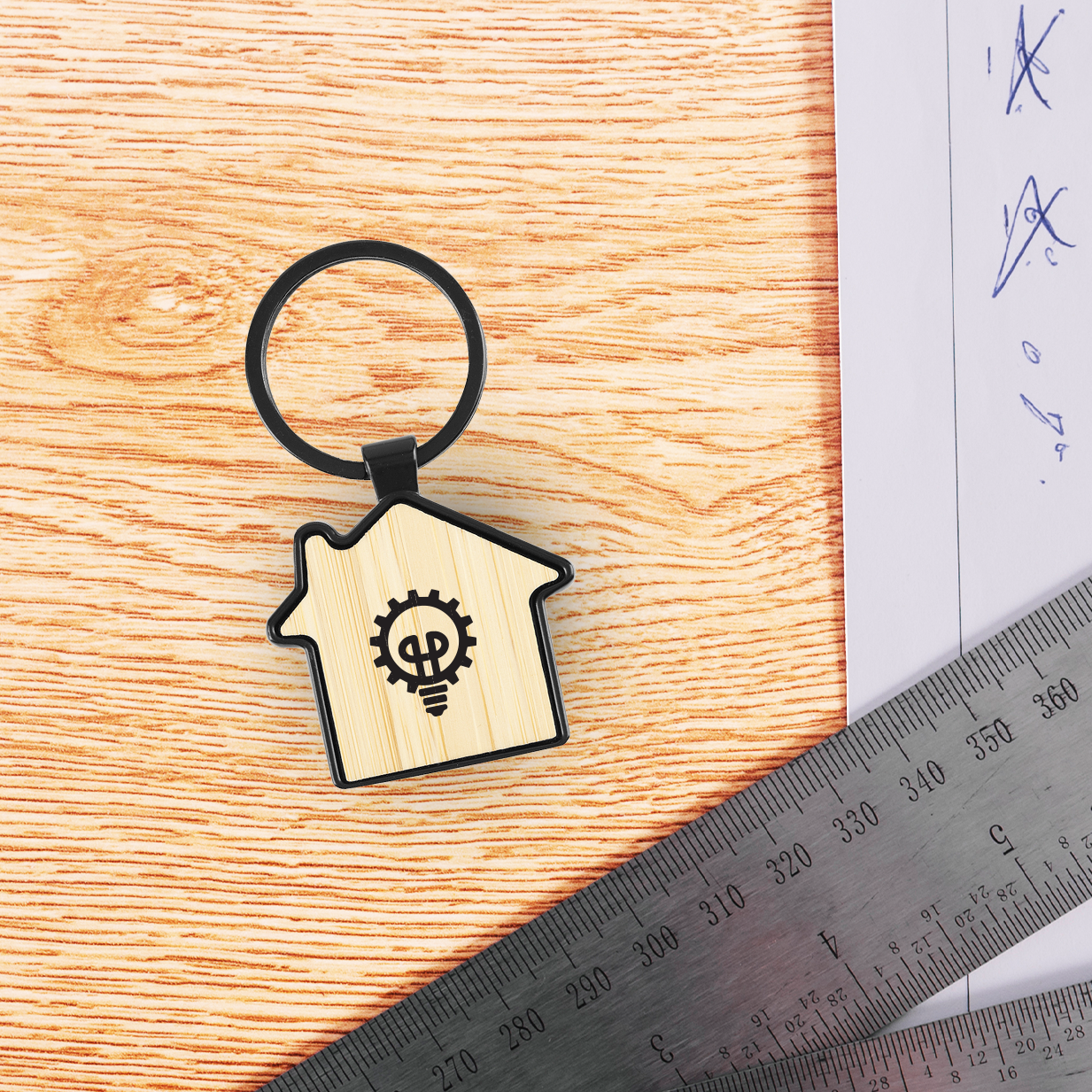 Elegantni privezak za ključeve u obliku kuće, izrađen od kombinacije metala i tamnog drveta. Pruža sofisticiran izgled i dugotrajnost. Preporučuje se kada je kvalitet presudan – idealan za korporativne poklone i brendiranje sa višom vrednošću.