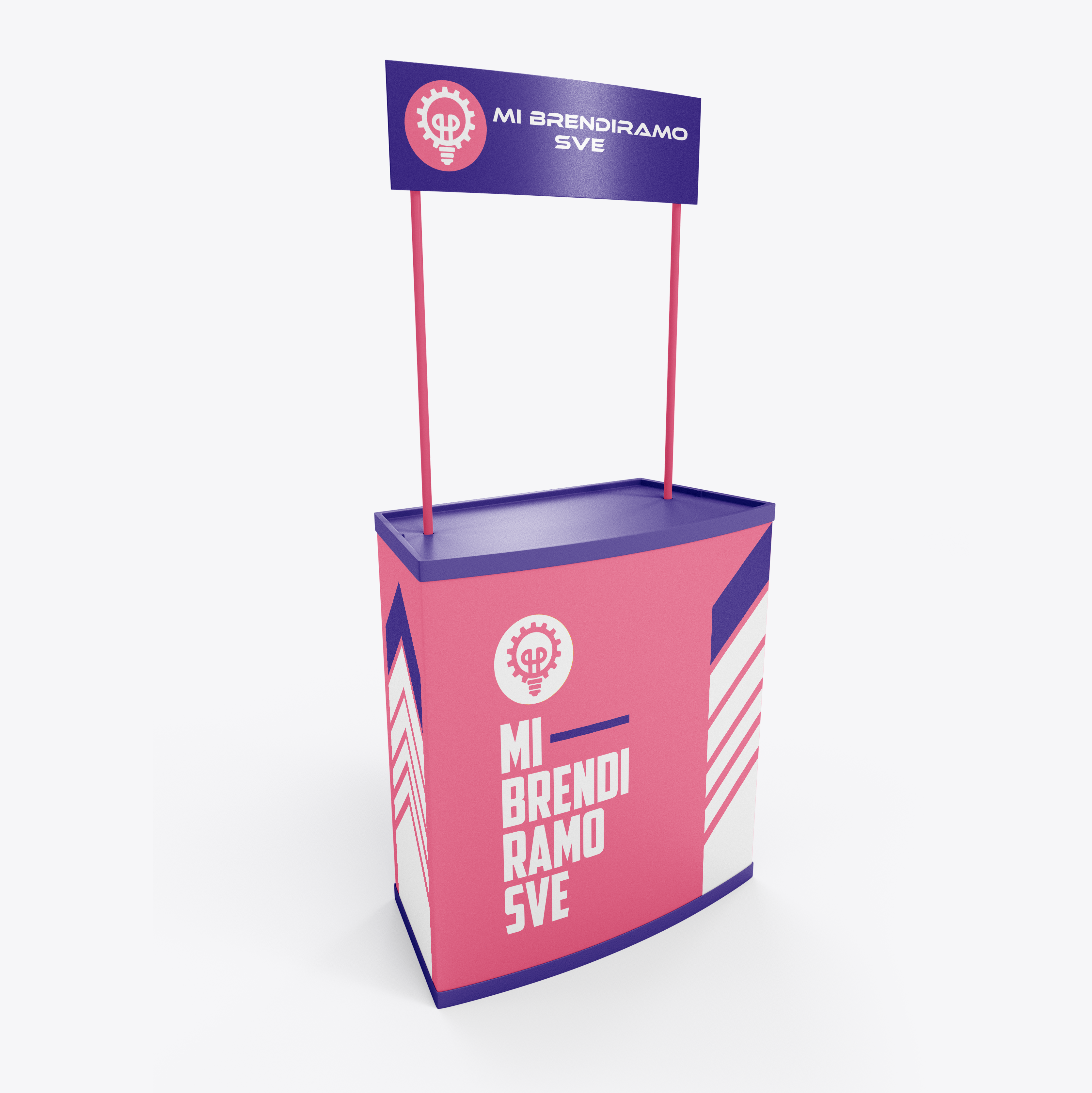 Fleksibilnost u dizajnu: Pultovi se mogu prilagoditi specifičnim zahtevima brenda, uključujući heder u obliku po želji klijenta, što omogućava dodatnu vizuelnu prepoznatljivost tokom promocija.