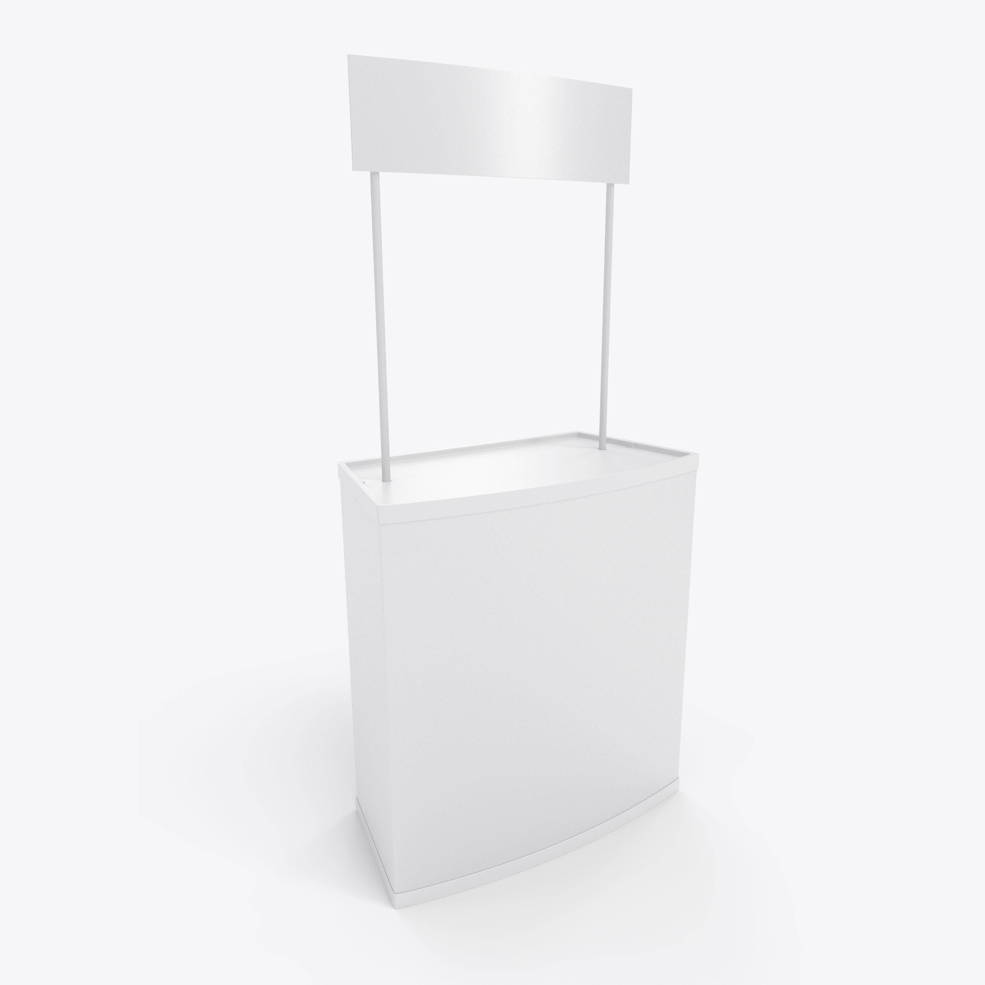 Promotivni pult izrađen od plastike, idealan za sajmove, prezentacije i promotivne događaje. Pruža stabilnu platformu za izlaganje proizvoda ili informacija. Dolazi u lako prenosivoj torbi.